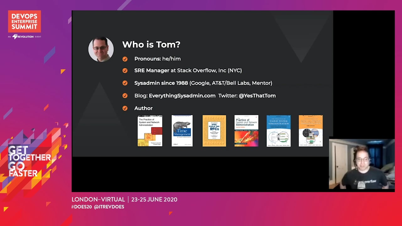 In this talk Tom describes how Stack Overflow uses this anthropological concept to make our DevOps environment more effective. Techniques include: smart defaults, “make the right way, the lazy way”, and documentation at the right time and place.