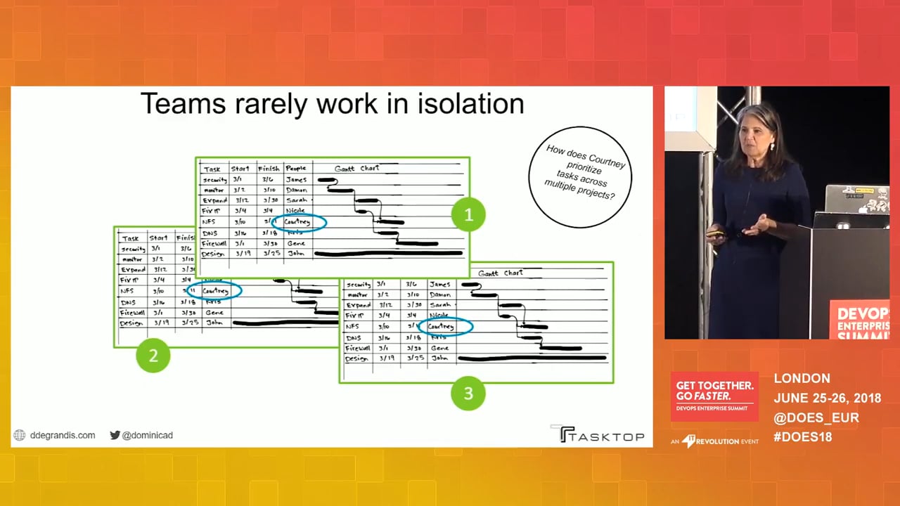 Her work shows technology and business organizations how to optimize workflow across value stream networks. Her passion involves the use of visual cues and transparency across teams and organizations to reveal mutually critical information.
