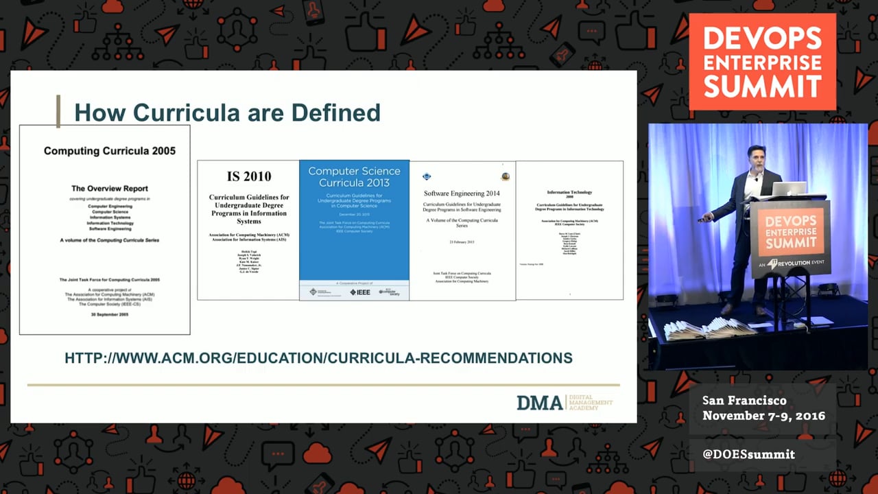 This fast-paced talk will cover both macro- and micro-scale efforts. Over the summer, 11 faculty from Minnesota teaching colleges worked with industry thought leaders to draft a report, “Digital Curricula: Toward next-generation IT education.” The report (including a survey on current digital workforce) compiled hundreds of learning objectives from leading digital and DevOps practices, for instructors and commercial trainers around the world to use in course development.