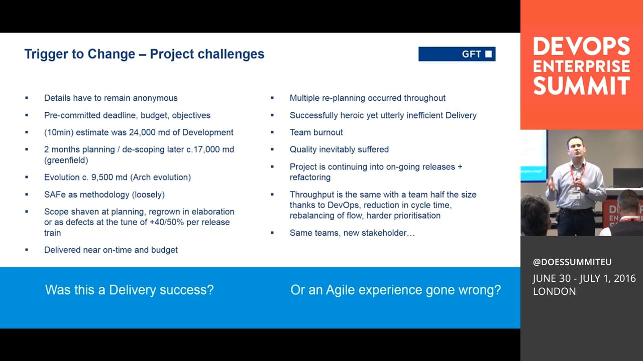 The adoption of Agile aimed to change this but it is slow coming. As a professional service organisation we often feel powerless, like most of our stakeholders, in driving better software delivery lifecycle. We have analysed the blockers step by step and established a new delivery model mixing Lean and Agile to overcome the constraints.