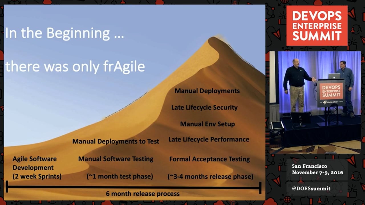 DevOps within Federal Agencies can be difficult to achieve when disparate, competing companies are involved in various aspects of a large-scale project. This case study discusses how one such program was successfully moved toward DevOps using value stream analysis and logic. Lessons learned and pitfalls will be discussed as well as metrics used to measure successes. Topics tackled will not only include a discussion of how CI/CD was implemented but how security and compliance was integrated into the process.
