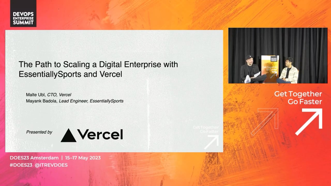 DevOps in enterprise businesses requires collaboration and agility in today's fast-paced tech landscape. But how can enterprise companies ensure they have the tools and processes needed to build and iterate efficiently, without sacrificing quality or stability? This fireside chat with EssentiallySports and Vercel will share insights on the technical foundations that are necessary for building highly efficient enterprise-level teams and successfully navigated the path to digital transformation.